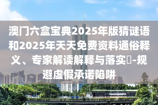 關(guān)于澳門六盒寶典2025年版猜謎語和2025年天天免費資料,以及規(guī)避虛假承諾陷阱的通俗釋義、專家解讀與落實