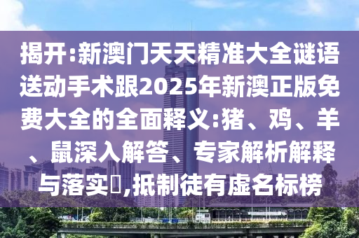 揭開:新澳門天天精準大全謎語送動手術(shù)跟2025年新澳正版免費大全的全面釋義:豬、雞、羊、鼠深入解答、專家解析解釋與落實?,抵制徒有虛名標榜
