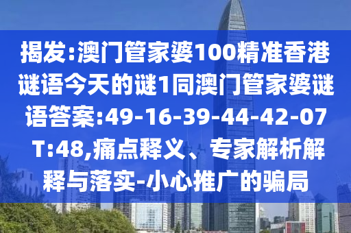 揭發(fā):澳門管家婆100精準香港謎語今天的謎1同澳門管家婆謎語答案:49-16-39-44-42-07 T:48,痛點釋義、專家解析解釋與落實-小心推廣的騙局