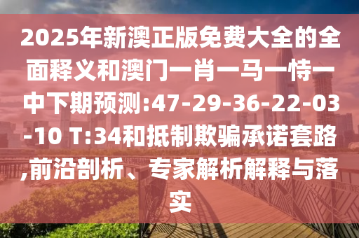 2025年新澳正版免費(fèi)大全的全面釋義和澳門一肖一馬一恃一中下期預(yù)測:47-29-36-22-03-10 T:34和抵制欺騙承諾套路,前沿剖析、專家解析解釋與落實