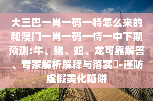 大三巴一肖一碼一特怎么來(lái)的和澳門(mén)一肖一碼一恃一中下期預(yù)測(cè):牛、豬、蛇、龍可靠解答、專(zhuān)家解析解釋與落實(shí)?-謹(jǐn)防虛假美化陷阱