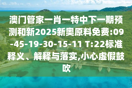 澳門(mén)管家一肖一特中下一期預(yù)測(cè)和新2025新奧原料免費(fèi):09-45-19-30-15-11 T:22標(biāo)準(zhǔn)釋義、解釋與落實(shí),小心虛假鼓吹