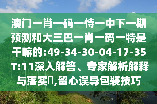 澳門一肖一碼一恃一中下一期預(yù)測和大三巴一肖一碼一特是干嘛的:49-34-30-04-17-35 T:11深入解答、專家解析解釋與落實?,留心誤導(dǎo)包裝技巧