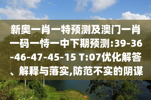 新奧一肖一特預(yù)測及澳門一肖一碼一恃一中下期預(yù)測:39-36-46-47-45-15 T:07優(yōu)化解答、解釋與落實(shí),防范不實(shí)的陰謀
