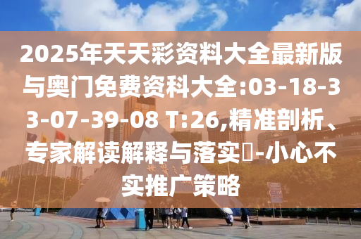 2025年天天彩資料大全最新版與奧門免費資科大全:03-18-33-07-39-08 T:26,精準剖析、專家解讀解釋與落實?-小心不實推廣策略