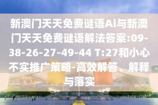 我們關(guān)注到了一個名為“新澳門天天免費(fèi)謎語”的推廣內(nèi)容,其中包括了所謂的“Ai解法”以及一個具體的謎語答案:“09-38-26-27-49-44 T:27”,隨著信息的傳播,我們也注意到其中附帶了提醒公眾小心不實推廣策略的內(nèi)容,本文將對此進(jìn)行深入的解答、解釋與落實。