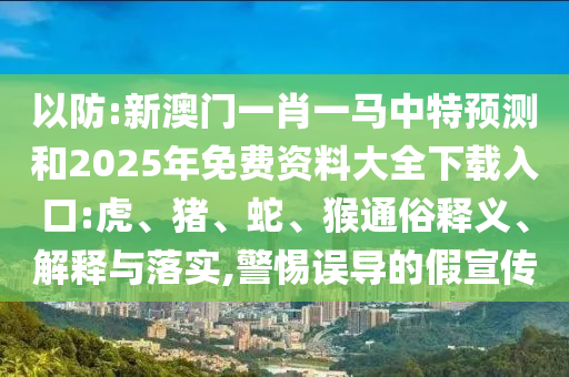 以防:新澳門一肖一馬中特預測和2025年免費資料大全下載入口:虎、豬、蛇、猴通俗釋義、解釋與落實,警惕誤導的假宣傳