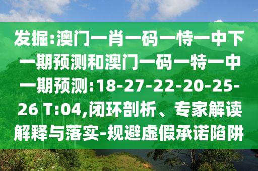 澳門一肖一碼一恃一中下一期預(yù)測(cè)和澳門一碼一特一中一期預(yù)測(cè):18-27-22-20-25-26 T:04的閉環(huán)剖析、專家解讀解釋與落實(shí)