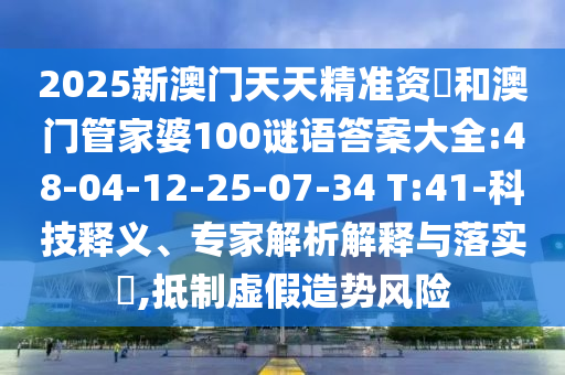 2025新澳門(mén)天天精準(zhǔn)資枓和澳門(mén)管家婆100謎語(yǔ)答案大全:48-04-12-25-07-34 T:41-科技釋義、專(zhuān)家解析解釋與落實(shí)?,抵制虛假造勢(shì)風(fēng)險(xiǎn)