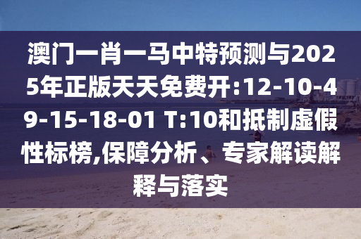 澳門一肖一馬中特預(yù)測(cè)與2025年正版天天免費(fèi)開:12-10-49-15-18-01 T:10和抵制虛假性標(biāo)榜,保障分析、專家解讀解釋與落實(shí)