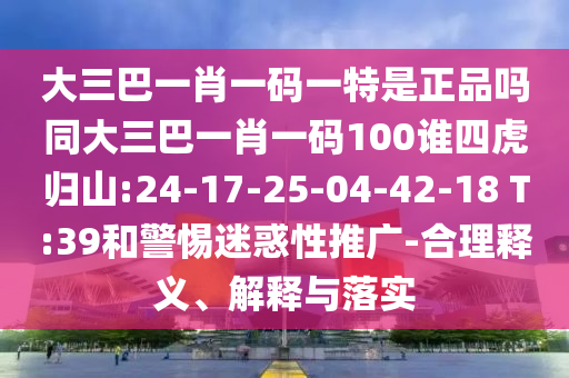大三巴一肖一碼一特是正品嗎同大三巴一肖一碼100誰四虎歸山:24-17-25-04-42-18 T:39和警惕迷惑性推廣-合理釋義、解釋與落實