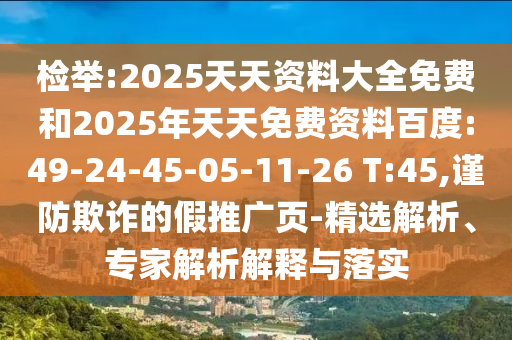 檢舉:2025天天資料大全免費和2025年天天免費資料百度:49-24-45-05-11-26 T:45,謹防欺詐的假推廣頁-精選解析、專家解析解釋與落實