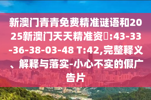 新澳門青青免費精準謎語和2025新澳門天天精準資枓:43-33-36-38-03-48 T:42,完整釋義、解釋與落實-小心不實的假廣告片