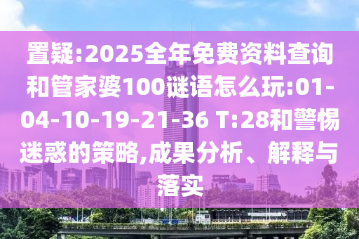 置疑:2025全年免費(fèi)資料查詢和管家婆100謎語怎么玩:01-04-10-19-21-36 T:28和警惕迷惑的策略,成果分析、解釋與落實(shí)