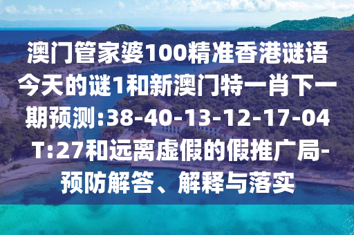 澳門管家婆100精準(zhǔn)香港謎語(yǔ)今天的謎1和新澳門特一肖下一期預(yù)測(cè):38-40-13-12-17-04 T:27:預(yù)防解答、解釋與落實(shí)