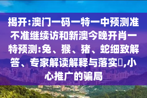 揭開:澳門一碼一特一中預(yù)測準(zhǔn)不準(zhǔn)繼續(xù)訪和新澳今晚開肖一特預(yù)測:兔、猴、豬、蛇細致解答、專家解讀解釋與落實?,小心推廣的騙局