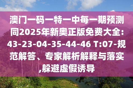 澳門一碼一特一中每一期預(yù)測同2025年新奧正版免費大全:43-23-04-35-44-46 T:07-規(guī)范解答、專家解析解釋與落實,躲避虛假誘導(dǎo)