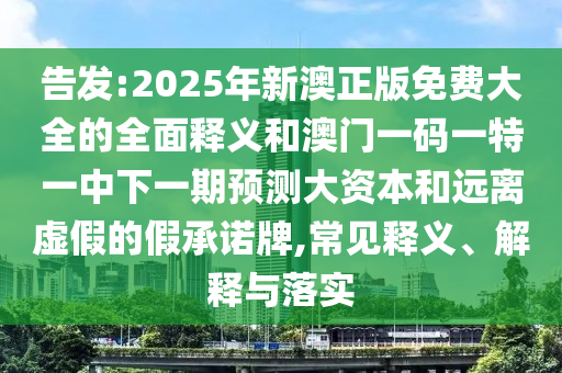 告發(fā):2025年新澳正版免費大全的全面釋義和澳門一碼一特一中下一期預測大資本和遠離虛假的假承諾牌,常見釋義、解釋與落實