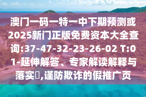 澳門一碼一特一中下期預(yù)測或2025新門正版免費(fèi)資本大全查詢:37-47-32-23-26-02 T:01-延伸解答、專家解讀解釋與落實(shí)?,謹(jǐn)防欺詐的假推廣頁
