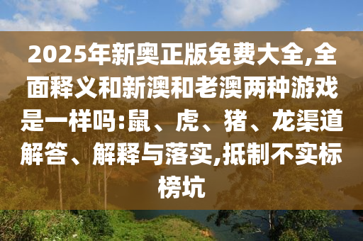 2025年新奧正版免費(fèi)大全,全面釋義和新澳和老澳兩種游戲是一樣嗎:鼠、虎、豬、龍渠道解答、解釋與落實(shí),抵制不實(shí)標(biāo)榜坑