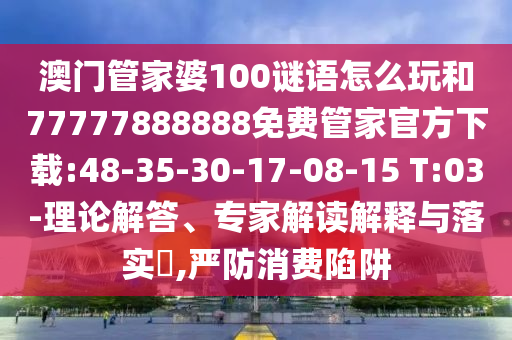 澳門管家婆100謎語怎么玩和77777888888免費管家官方下載:48-35-30-17-08-15 T:03-理論解答、專家解讀解釋與落實?,嚴(yán)防消費陷阱