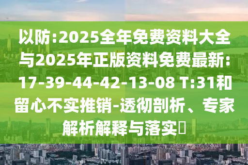 以防:2025全年免費(fèi)資料大全與2025年正版資料免費(fèi)最新:17-39-44-42-13-08 T:31和留心不實(shí)推銷-透徹剖析、專家解析解釋與落實(shí)?