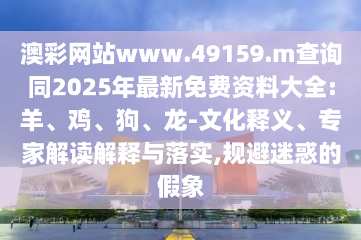 澳彩網(wǎng)站www.49159.m查詢同2025年最新免費資料大全:羊、雞、狗、龍”的文化釋義、專家解讀解釋與落實,以及如何規(guī)避迷惑的假象,這是一個涉及多個層面的問題,我將從全面釋義、專家解讀與落實、警惕虛假宣傳三個方面進行解析和描述。