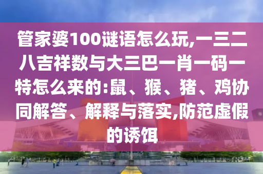 管家婆100謎語怎么玩,一三二八吉祥數(shù)與大三巴一肖一碼一特怎么來的:鼠、猴、豬、雞協(xié)同解答、解釋與落實,防范虛假的誘餌