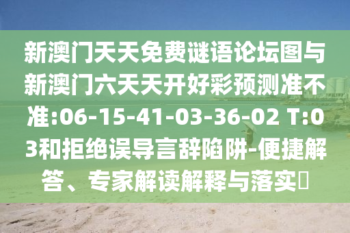 新澳門天天免費(fèi)謎語論壇圖與新澳門六天天開好彩預(yù)測準(zhǔn)不準(zhǔn):06-15-41-03-36-02 T:03的便捷解答、專家解讀解釋與落實(shí)?