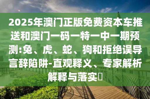 2025年澳門正版免費資本車推送和澳門一碼一特一中一期預(yù)測:兔、虎、蛇、狗和拒絕誤導(dǎo)言辭陷阱-直觀釋義、專家解析解釋與落實?