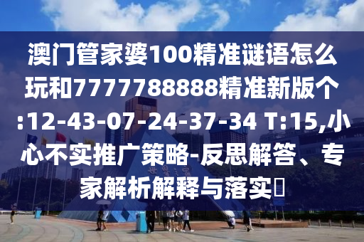 澳門管家婆100精準(zhǔn)謎語怎么玩和7777788888精準(zhǔn)新版?zhèn)€:12-43-07-24-37-34 T:15,小心不實(shí)推廣策略-反思解答、專家解析解釋與落實(shí)?