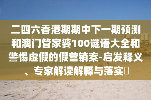 二四六香港期期中下一期預(yù)測和澳門管家婆100謎語大全和警惕虛假的假營銷案-啟發(fā)釋義、專家解讀解釋與落實?