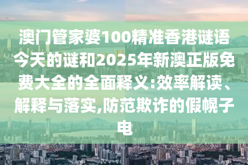 澳門(mén)管家婆100精準(zhǔn)香港謎語(yǔ)今天的謎和2025年新澳正版免費(fèi)大全的全面釋義:效率解讀、解釋與落實(shí),防范欺詐的假幌子電