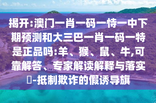 揭開:澳門一肖一碼一恃一中下期預測和大三巴一肖一碼一特是正品嗎:羊、猴、鼠、牛,可靠解答、專家解讀解釋與落實?-抵制欺詐的假誘導旗