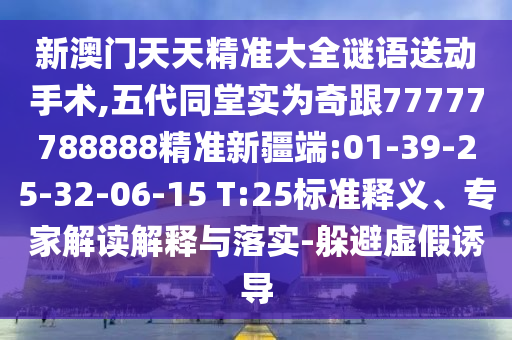 新澳門天天精準大全謎語送動手術(shù),五代同堂實為奇跟77777788888精準新疆端:01-39-25-32-06-15 T:25:標準釋義、專家解讀解釋與落實
