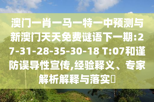 澳門一肖一馬一特一中預測與新澳門天天免費謎語下一期:27-31-28-35-30-18 T:07和謹防誤導性宣傳,經驗釋義、專家解析解釋與落實?