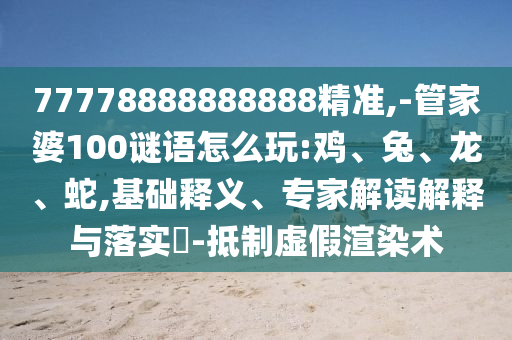 77778888888888精準(zhǔn),-管家婆100謎語(yǔ)怎么玩:雞、兔、龍、蛇,基礎(chǔ)釋義、專家解讀解釋與落實(shí)?-抵制虛假渲染術(shù)