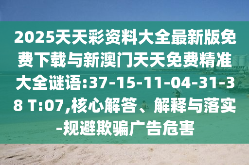 2025天天彩資料大全最新版免費(fèi)下載與新澳門天天免費(fèi)精準(zhǔn)大全謎語(yǔ):37-15-11-04-31-38 T:07,核心解答、解釋與落實(shí)-規(guī)避欺騙廣告危害