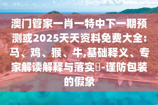 關(guān)于澳門(mén)管家一肖一特中下一期預(yù)測(cè)或2025天天資料免費(fèi)大全:馬、雞、猴、?!?jǐn)防包裝的假象,我們可以從全面釋義、專(zhuān)家解讀與落實(shí)等方面進(jìn)行深入解析。