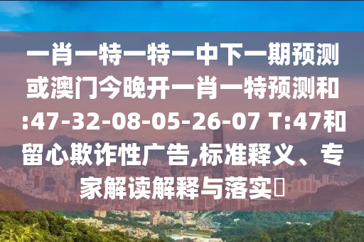 一肖一特一特一中下一期預(yù)測(cè)或澳門今晚開一肖一特預(yù)測(cè)和:47-32-08-05-26-07 T:47和留心欺詐性廣告,標(biāo)準(zhǔn)釋義、專家解讀解釋與落實(shí)?