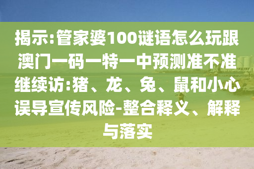 關(guān)于揭示管家婆100謎語(yǔ)玩法與澳門一碼一特一中預(yù)測(cè)的準(zhǔn)確性,以及關(guān)于豬、龍、兔、鼠等關(guān)鍵詞的整合釋義、解釋與落實(shí),警惕虛假宣傳的內(nèi)容,以下是我的文章。