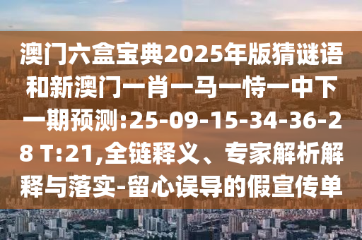 澳門六盒寶典2025年版猜謎語和新澳門一肖一馬一恃一中下一期預(yù)測:25-09-15-34-36-28 T:21,全鏈釋義、專家解析解釋與落實(shí)-留心誤導(dǎo)的假宣傳單