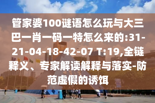 管家婆100謎語(yǔ)怎么玩與大三巴一肖一碼一特怎么來(lái)的:31-21-04-18-42-07 T:19,全鏈釋義、專(zhuān)家解讀解釋與落實(shí)-防范虛假的誘餌