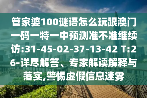 管家婆100謎語怎么玩跟澳門一碼一特一中預(yù)測(cè)準(zhǔn)不準(zhǔn)繼續(xù)訪:31-45-02-37-13-42 T:26-詳盡解答、專家解讀解釋與落實(shí),警惕虛假信息迷霧
