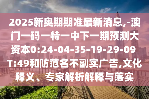 2025新奧期期準(zhǔn)最新消息,-澳門一碼一特一中下一期預(yù)測大資本0:24-04-35-19-29-09 T:49和防范名不副實(shí)廣告,文化釋義、專家解析解釋與落實(shí)