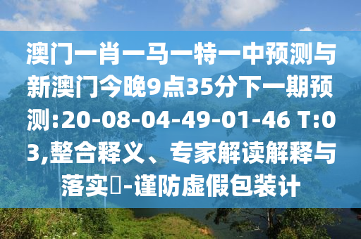 澳門一肖一馬一特一中預測與新澳門今晚9點35分下一期預測:20-08-04-49-01-46 T:03,整合釋義、專家解讀解釋與落實?-謹防虛假包裝計