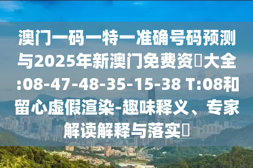 澳門一碼一特一準(zhǔn)確號碼預(yù)測與2025年新澳門免費(fèi)資枓大全:08-47-48-35-15-38 T:08和留心虛假渲染-趣味釋義、專家解讀解釋與落實?