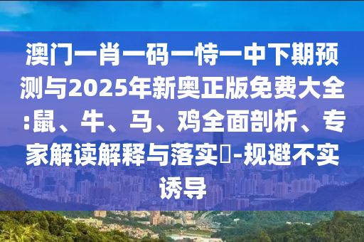 澳門一肖一碼一恃一中下期預(yù)測與2025年新奧正版免費大全:鼠、牛、馬、雞全面剖析、專家解讀解釋與落實?-規(guī)避不實誘導(dǎo)