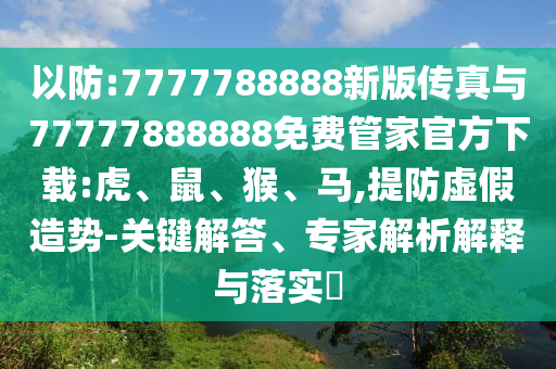 本文將要解析的關鍵詞涉及新版?zhèn)髡嫣柎a“7777788888”、免費管家官方下載,以及虎、鼠、猴、馬四個生肖,在此,我們將逐一解釋這些關鍵詞,并特別強調(diào)提防與警惕可能出現(xiàn)的虛假宣傳。
