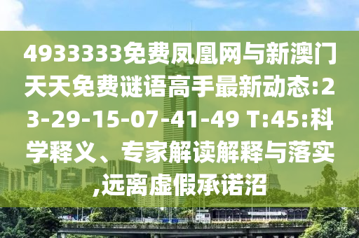 4933333免費(fèi)鳳凰網(wǎng)與新澳門(mén)天天免費(fèi)謎語(yǔ)高手最新動(dòng)態(tài):23-29-15-07-41-49 T:45:科學(xué)釋義、專家解讀解釋與落實(shí),遠(yuǎn)離虛假承諾沼